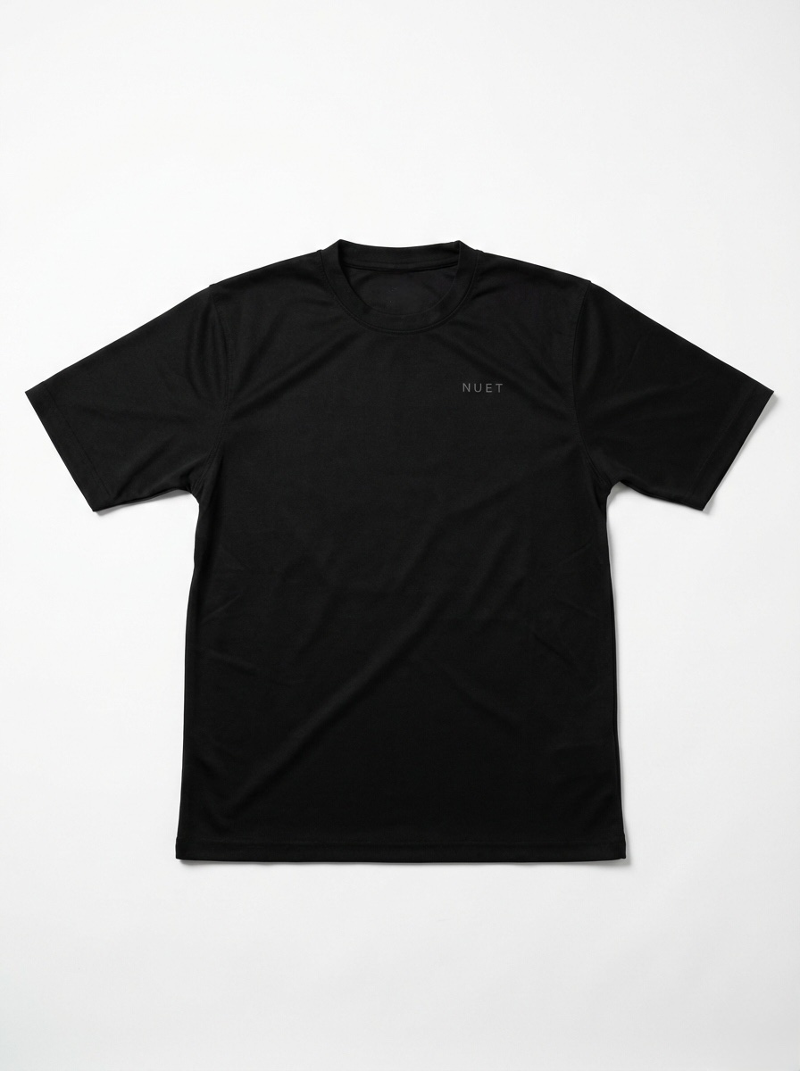 Introducing the NUET ‘ITP’ fast T-shirt in Jet Black, built for comfort, movement, and daily versatility. Crafted from technical active polyester mesh. Designed for running.
